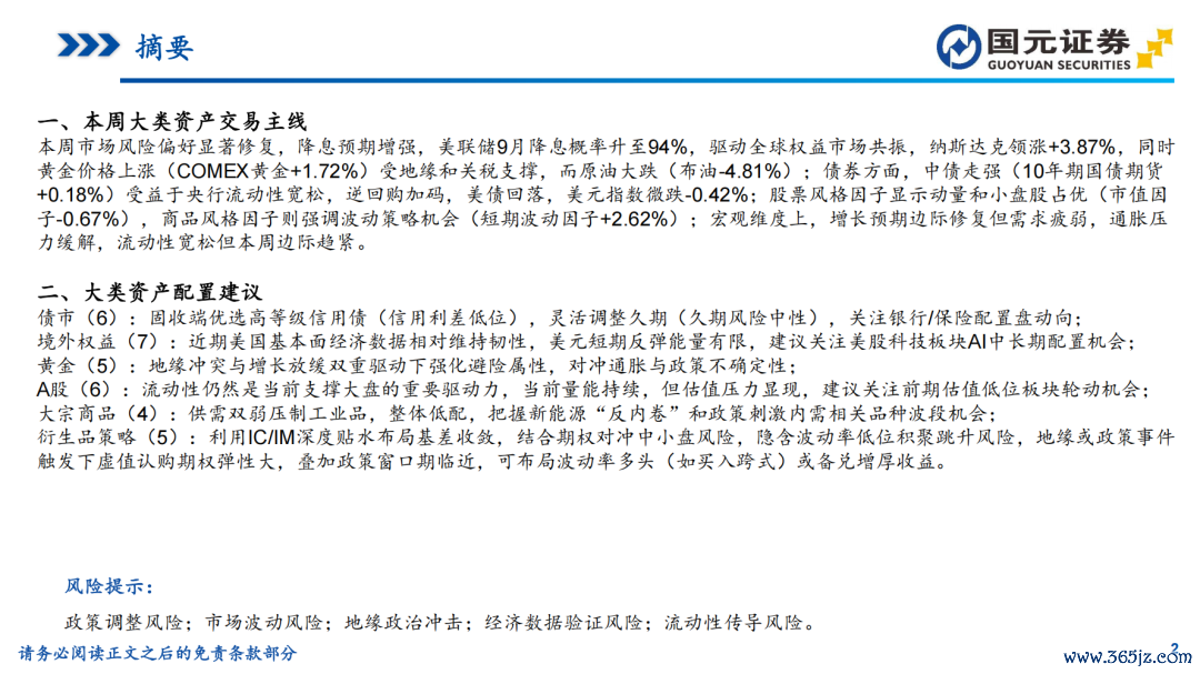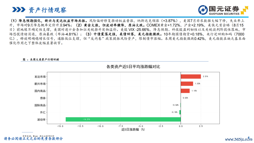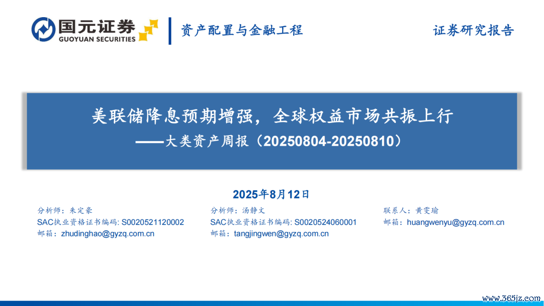 好意思联储降息预期增强,天下权柄商场共振上行——大类财富周报(20250804-20250810)