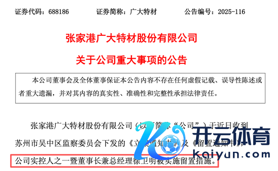 稠密特材(688186)10月14日晚公告,公司于近日收到苏州市吴中区监察委员会下发的《立案告知书》及《留置告知书》,公司实控东谈主之一暨董事长兼总司理徐卫明被实施留置按序。